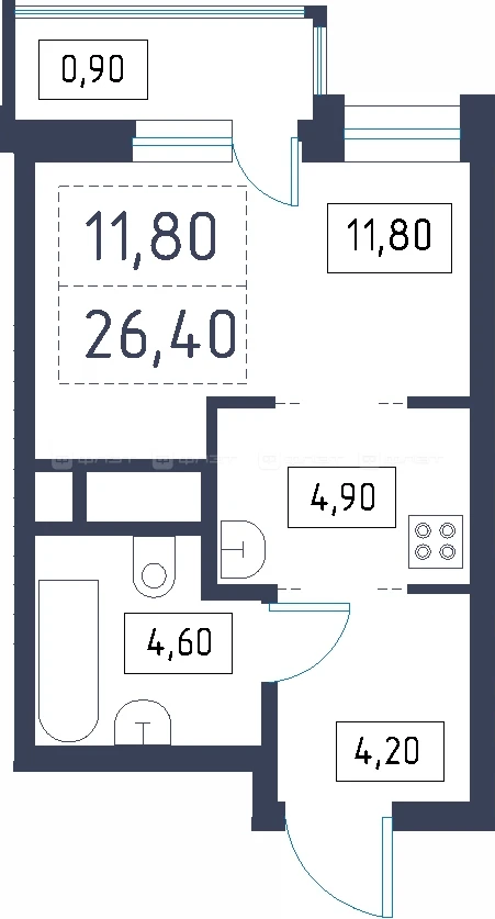 - 26.4/11.8/4.9 м²