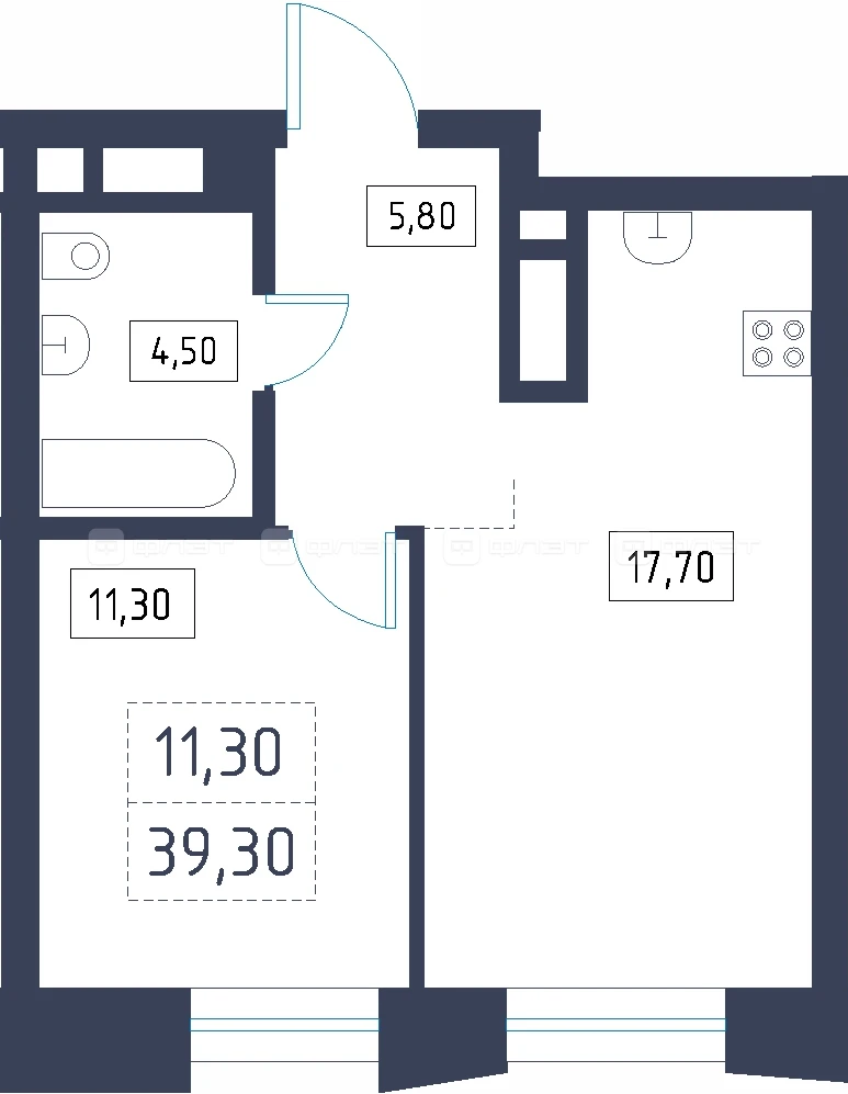 - 39.3/11.3/17.7 м²